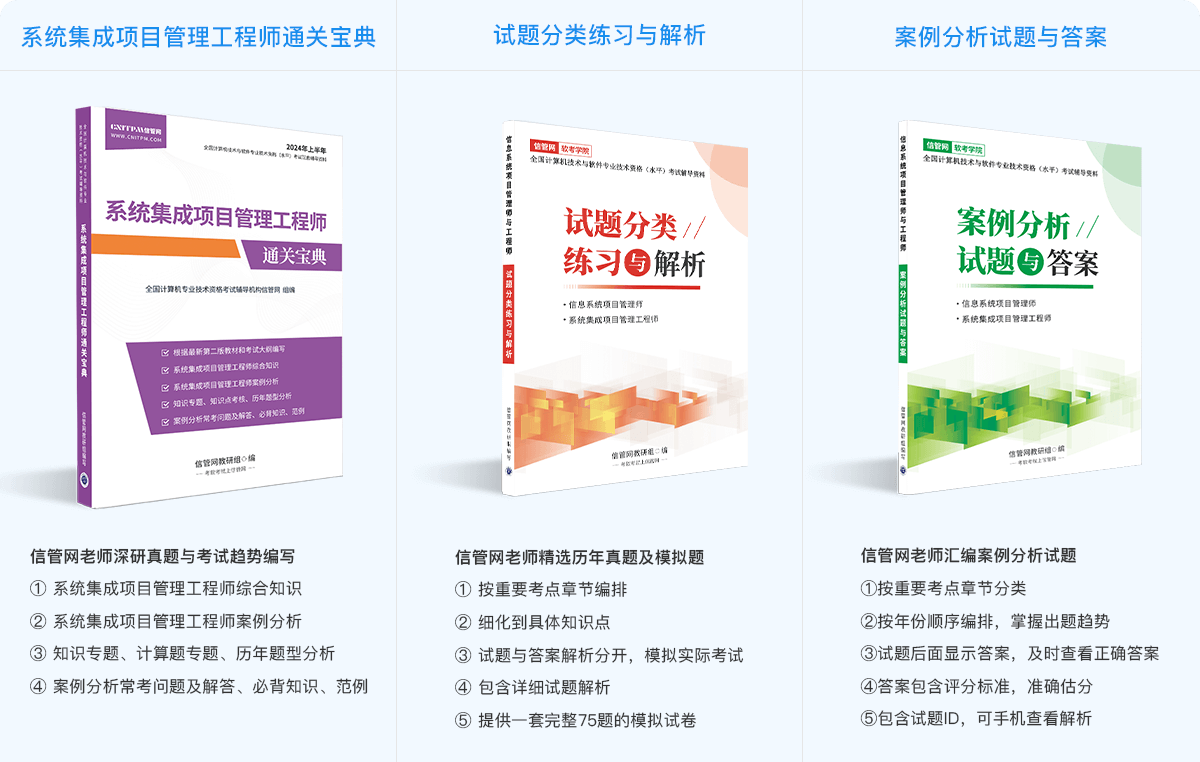 信管網(wǎng)軟考課程由信管網(wǎng)依托10年專業(yè)軟考教研傾力打造,教材和資料參編作者和資深講師坐鎮(zhèn),通過深研歷年考試出題規(guī)律與考試大綱,深挖核心知識與高頻考點,為學員考試保駕護航。面授、直播&錄播,多種班型靈活學習,滿足不同學員考證需求,降低課程學習難度,使學習效果事半功倍。
